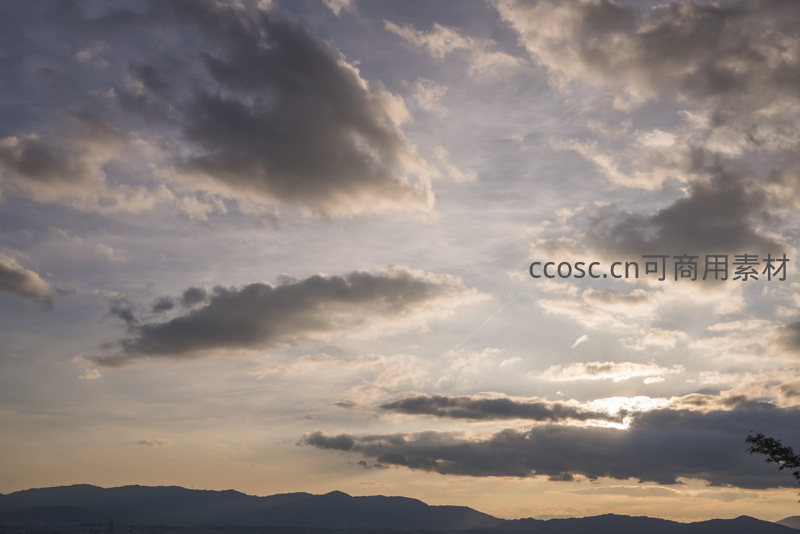 金色阳光从云隙中倾泻而出,照亮连绵起伏的山峦,云影与光斑交织,构成一幅充满戏剧性与温暖感的自然风光图。