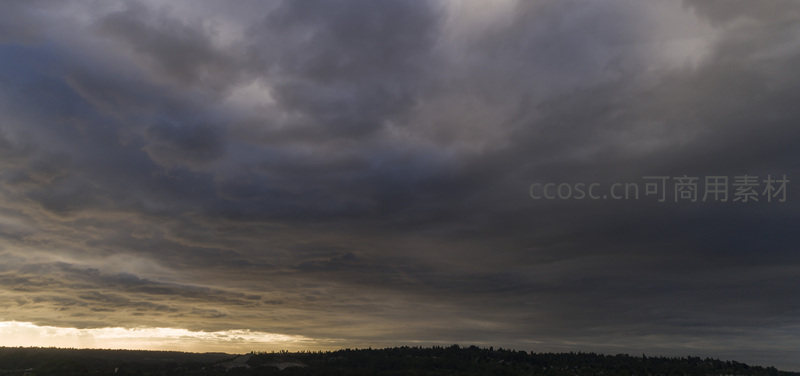 浓重乌云几乎遮蔽整片天空,却在地平线处裂开缝隙,透出微弱但坚定的曙光,象征着风雨欲来前的宁静与希望的微光。