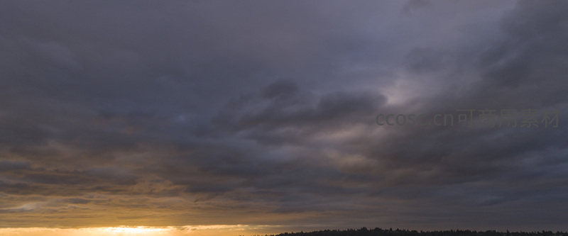 厚重的云层在黄昏时分被夕阳染成金黄与深灰交织的画卷,光线穿透云隙洒向大地,营造出宁静而壮丽的自然氛围。