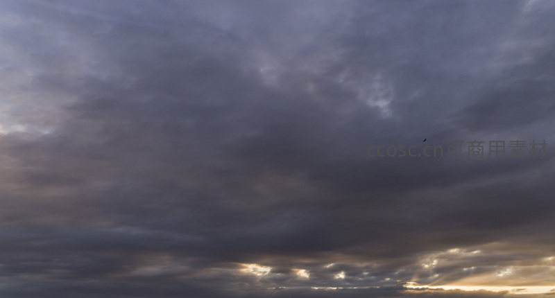 孤鸟掠过阴云密布的黄昏天幕