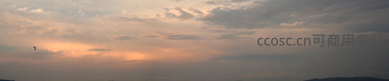 孤鸟掠过霞空,暮色苍茫山影朦胧