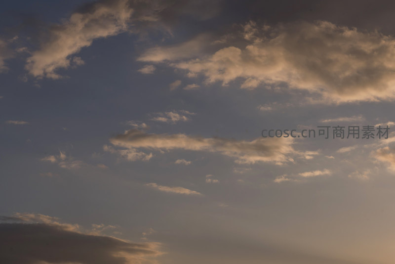 暮色渐浓,云朵在深蓝与金橙之间流转,形态万千,仿佛天地间挥毫泼墨的杰作,充满视觉张力与诗意美感。