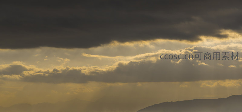 乌云压顶,金色光束刺破阴霾