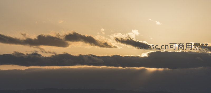 太阳半隐于云层之后,放射出清晰而强烈的光束,穿透灰暗云层直抵远方地平线,营造出神秘、庄严且充满希望的黄昏氛围。