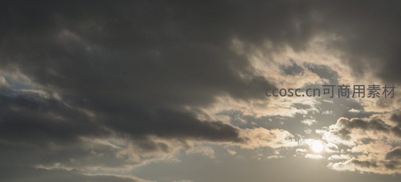 浓重的乌云笼罩天际,却有几处光点穿透而出,太阳微露光芒,带来温暖与希望,象征困境中总有一线光明等待被发现。