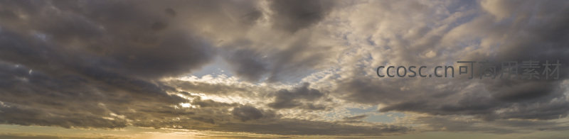 广角镜头捕捉到的暮色云海与穿透云隙的金色阳光