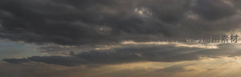 浓密的乌云几乎遮蔽了整个天空,但强烈的光束从缝隙中射出,创造出极具戏剧性和视觉冲击力的画面。