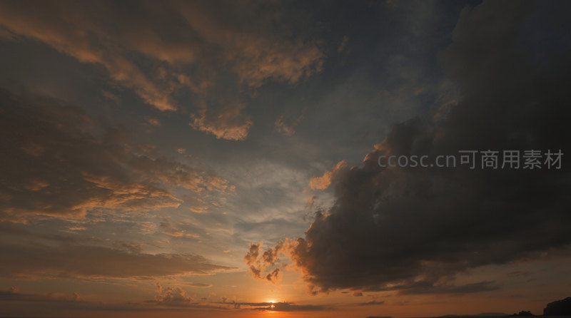 暮色苍穹下,火烧云与暗云交织的壮丽天幕