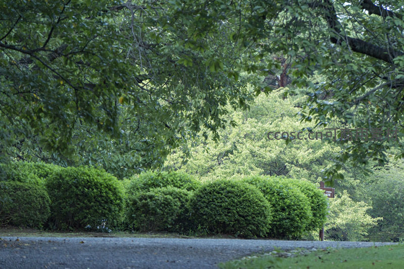 修剪整齐的灌木丛,掩映林荫小径