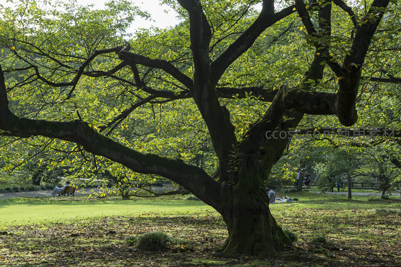 公园大树下悠闲的人们