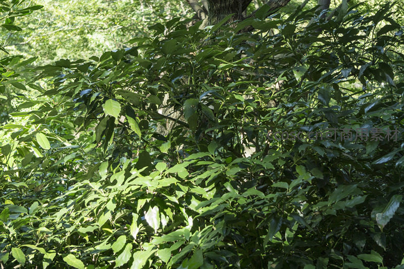阳光穿透层层叠叠的绿叶,在林间洒下斑驳陆离的光影。叶片饱满油亮,充满生命力,展现了大自然最原始、最蓬勃的绿色之美。