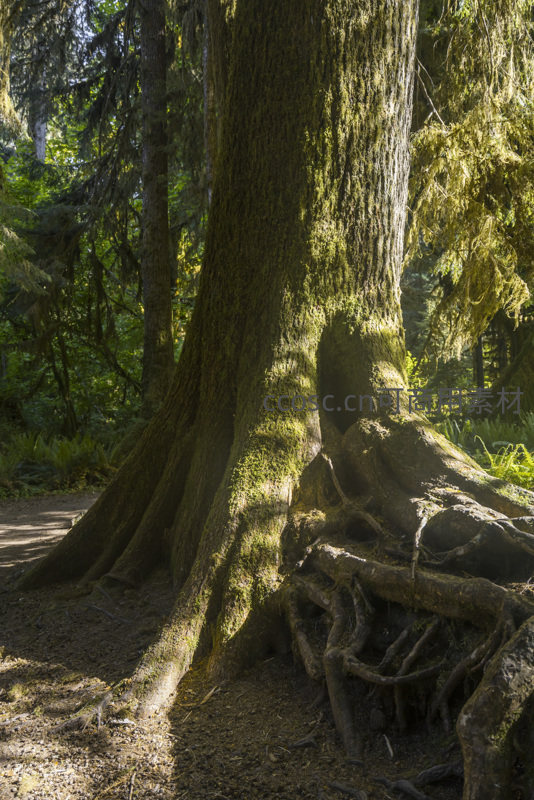 森林巨木根部特写,光影斑驳如画