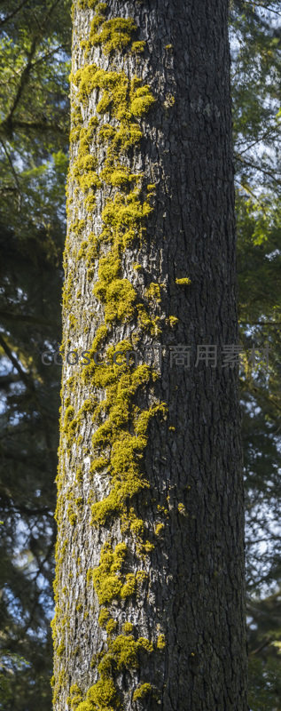 树干上青苔点缀的自然纹理特写