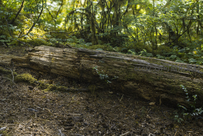 森林中覆盖青苔的倒木静卧于林间
