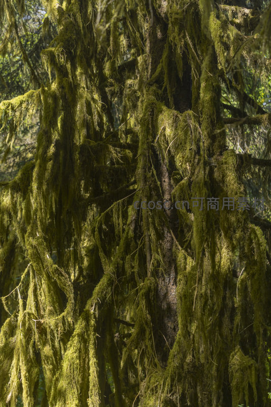 巨树垂挂浓密苔藓如绿帘般飘逸