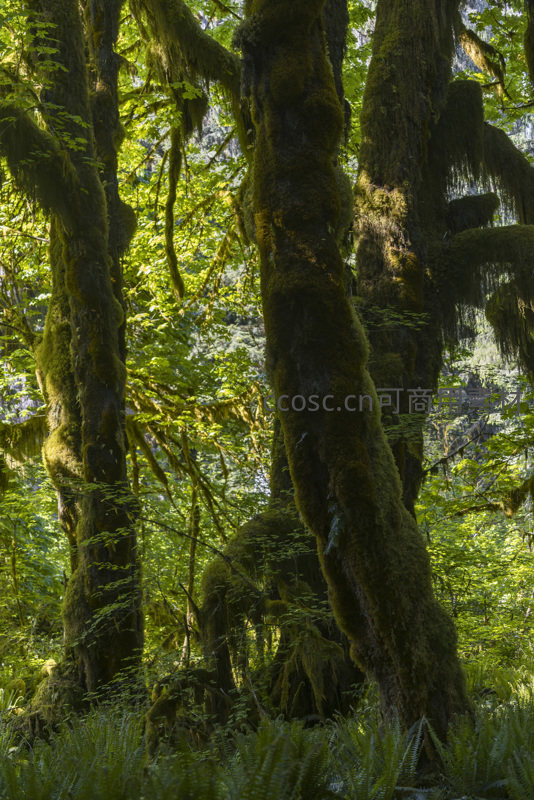 森林深处苔藓缠绕巨木,光影交织绿意盎然
