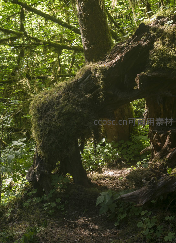 倒伏朽木被青苔温柔包裹成自然雕塑