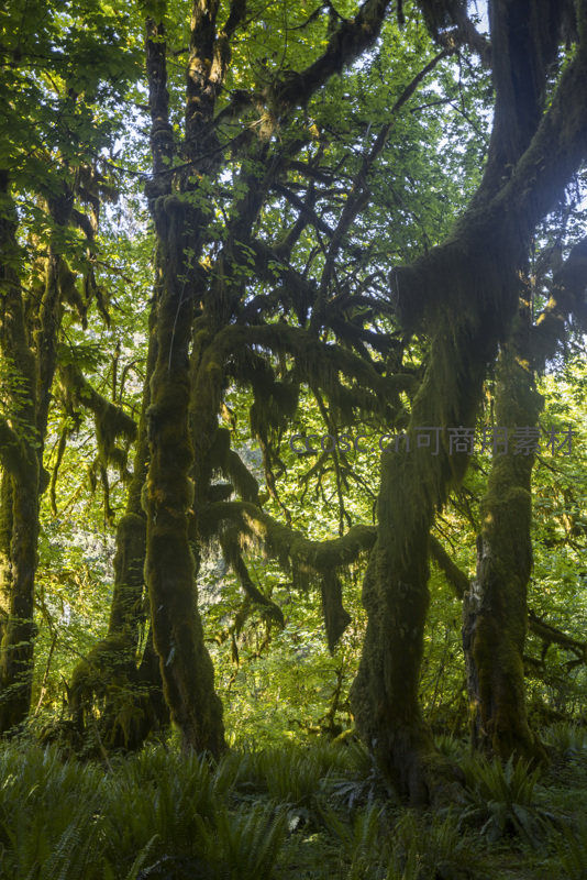 粗壮的树干上垂挂浓密的苔藓,枝叶交织成天然穹顶,阳光在林间投下柔和光柱,仿佛进入一个远离尘嚣的秘境世界。