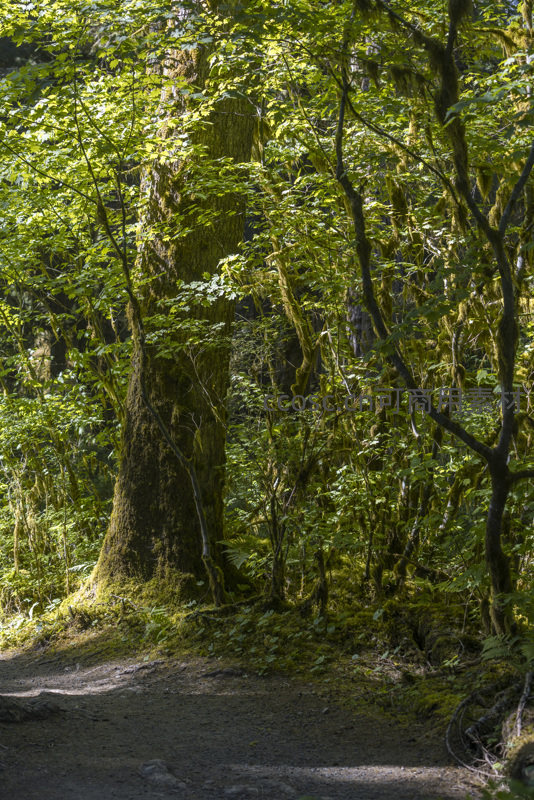 一条蜿蜒的土路穿过被浓密苔藓覆盖的古老森林,阳光斑驳地洒在地面,营造出静谧而神秘的探险氛围。