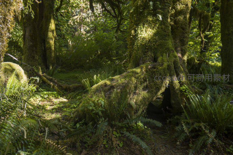 粗壮的树根如巨龙般盘踞地面,被翠绿苔藓温柔覆盖,一条隐秘小径蜿蜒其间,引领探索者步入充满生命力的原始森林腹地。