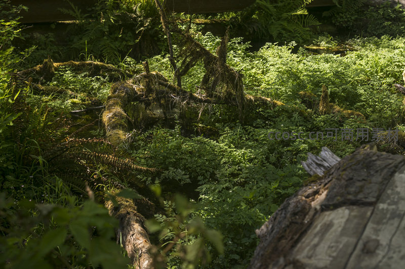 倒伏林木与蕨类交织,光影斑驳如画