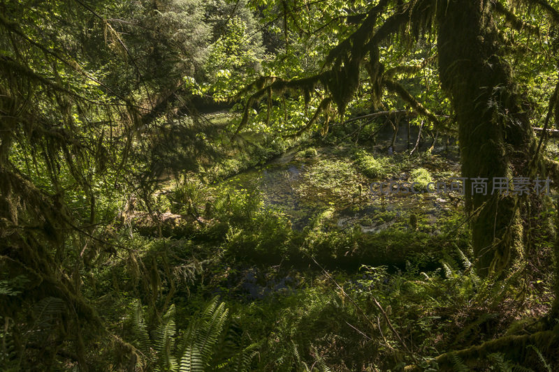 苔藓垂挂的森林溪流静谧如画