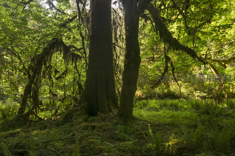 阳光亲吻的古老林间,苔藓与绿叶共舞