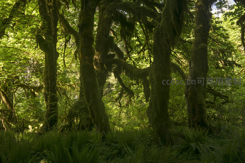 粗壮的树干与枝桠被厚厚的苔藓包裹,仿佛森林的守护者,在柔和的光线下展现出古老而庄严的生命力。