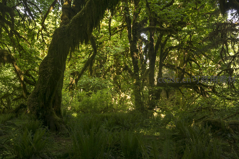 阳光穿透层层树叶,为覆盖着苔藓的森林披上金色外衣,蕨类植物在光影中摇曳,奏响自然的和谐乐章。