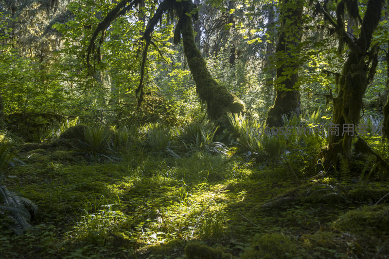 晨光中的苔藓森林光影交响曲