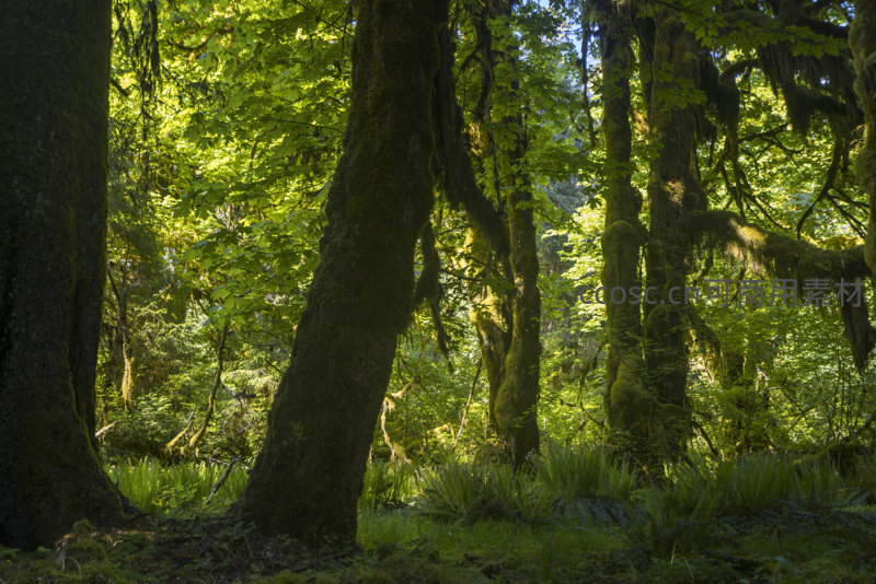 粗壮的树干被浓密苔藓温柔包裹,如同披着绿色外衣的森林巨人。阳光穿过层层叠叠的叶片,在树影间投下温暖光束,展现出大自然鬼斧神工的和谐与静美。
