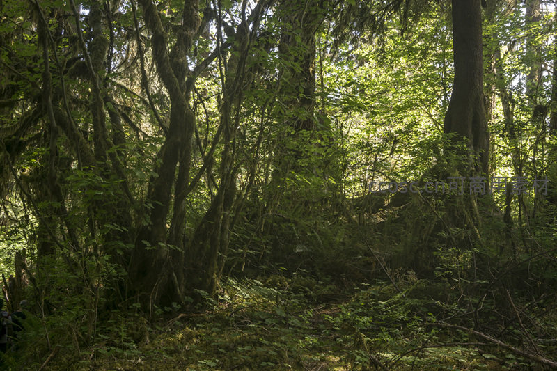 蜿蜒的小径隐没在树影斑驳的丛林中,四周被青苔和绿植环绕,阳光偶尔穿透树冠,为这片静谧之地增添一丝温暖。