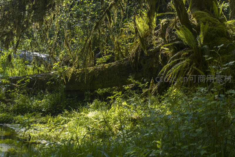 倒木与溪流旁的湿地绿意