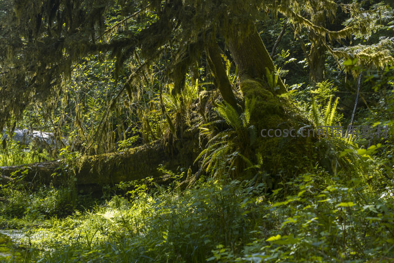 古老的森林中,巨大的树木被厚厚的苔藓覆盖,阳光透过树叶洒在繁茂的蕨类植物上,营造出宁静而神秘的氛围。