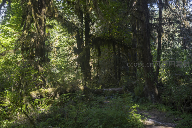 阳光洒落森林深处,苔藓垂挂如帘