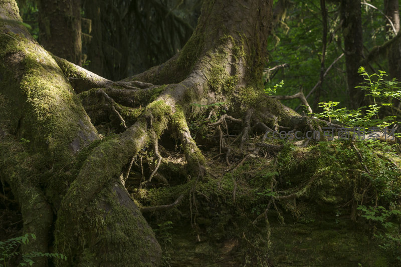 盘根错节的古树根系被青苔温柔包裹