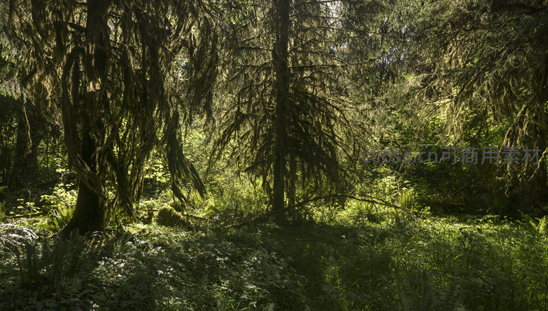 晨光穿过高耸针叶林,在铺满苔藓的地面投下斑驳光影,营造出如梦似幻的森林深处氛围。