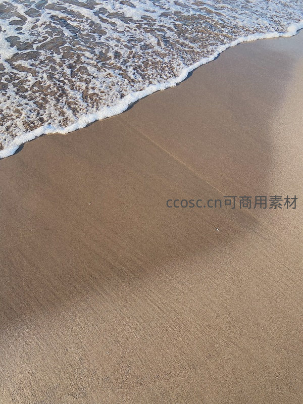 阳光下海浪冲刷湿润沙滩的动态纹理