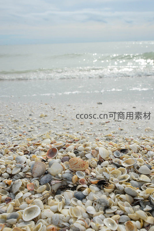 贝壳铺满海岸,海洋的馈赠静待拾取