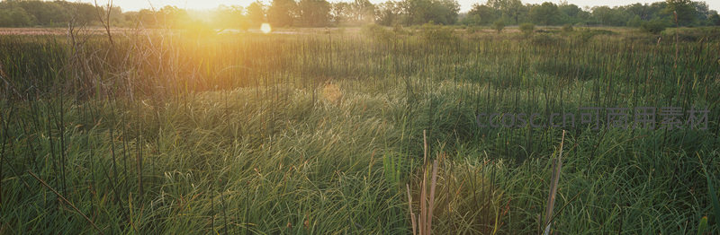 夕阳西下,金色的阳光穿透茂密的芦苇丛,为整片湿地披上温暖光辉,营造出静谧而诗意的自然画卷。