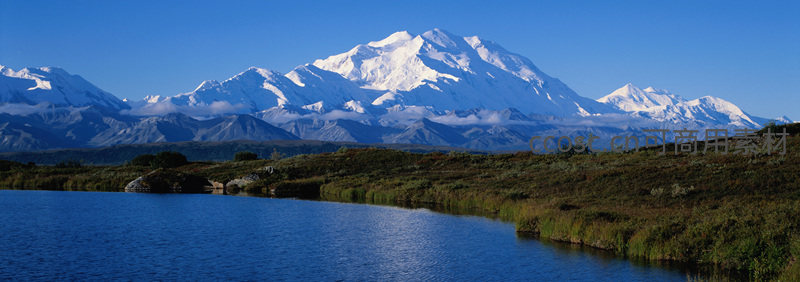雪峰巍峨俯瞰湿地湖泊