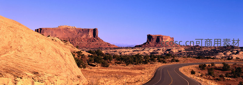 沙漠公路蜿蜒穿过红色岩层峡谷