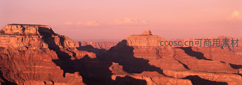 清晨柔和的阳光斜照在峡谷岩壁上,形成深浅不一的明暗对比,巨大的岩石轮廓在地面投下长长的影子,静谧而富有戏剧性。