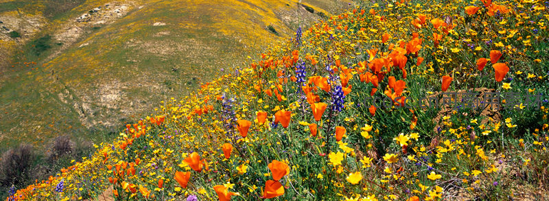春日山坡上橙黄紫各色野花竞相绽放,铺满整个坡面,宛如一幅色彩斑斓的天然地毯,生机盎然,美不胜收。