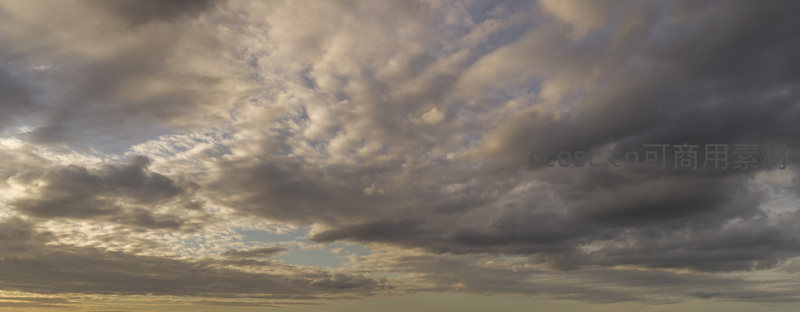 广阔天空中层云密布,夕阳余晖为云朵镶上金边,光影交错间奏响一曲气势磅礴的自然交响乐章。