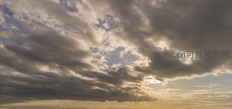 太阳从云隙中洒下温暖光芒,照亮层层叠叠的云朵,形成戏剧性光影对比的天空景象。