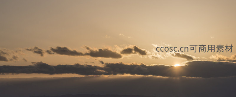 温暖的夕阳从厚重云层中透出金色光芒,照亮天际与远山轮廓,营造出宁静而壮丽的黄昏氛围。