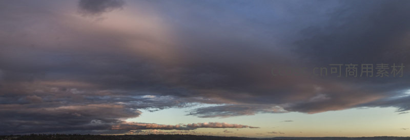 广袤天幕下,层层叠叠的云朵如波涛奔涌,被落日余晖染成暖色调。地平线隐约可见,整幅景象开阔而富有层次,令人心旷神怡。