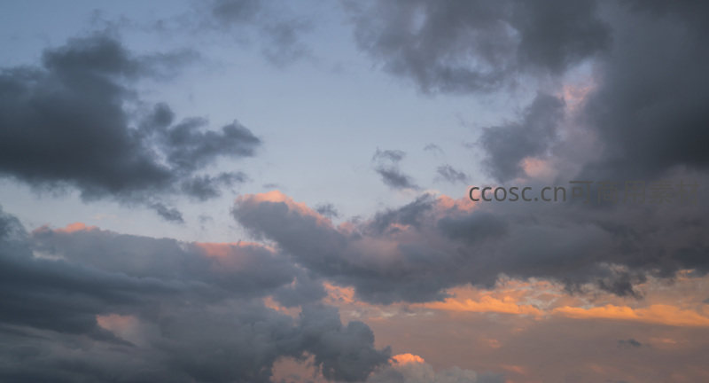厚重灰云被夕阳撕开缝隙,迸发出炽热橙粉光芒,如火焰般蔓延于天际,冷暖色调激烈碰撞,勾勒出一幅动态十足的黄昏画卷。