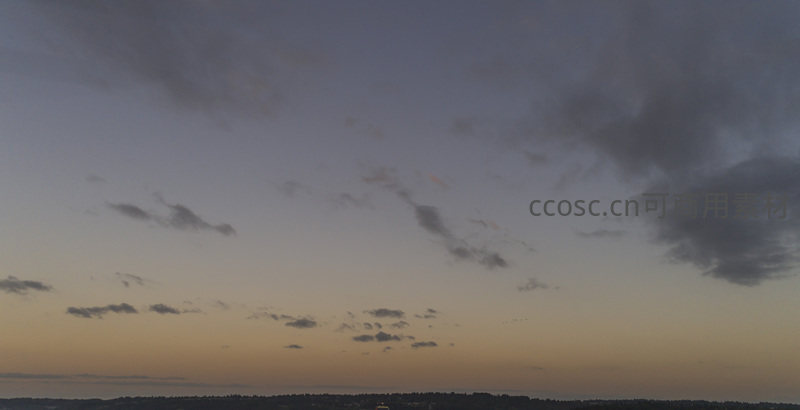 暮色四合,大片云影飘过天际,城市轮廓在柔和光线下若隐若现,整个画面弥漫着安详宁静的黄昏气息。